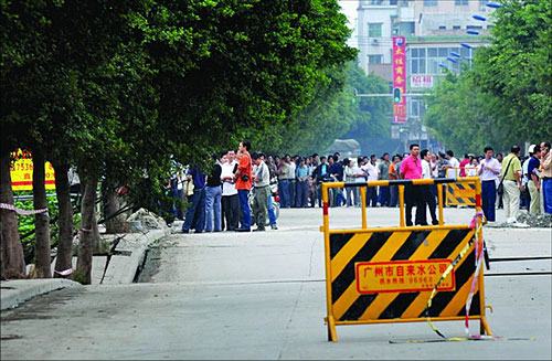 11月4日中午,廣州市荔灣橋中中路西郊泮塘工業區地段地面下陷,三間房屋倒塌,幸無人員傷亡。事故造成橋中中路交通封閉,附近居民家中停水停電。(記者 林勁松 實習生 過國銳)
