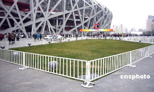 2008年11月8日,國家體育場(“鳥巢”)廣場四周的綠地全部新設了漂亮的護欄,為草坪及設施增加了一道安全屏障,美化了環境。中新社發 玉龍 攝