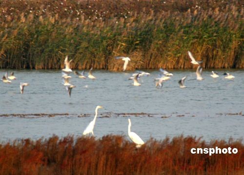 11月9日,一群候鳥在連云港臨洪濕地上盤旋、覓食。隨著生態環境的日益改善,江蘇連云港成為多種候鳥理想的越冬之地,來此越冬的候鳥逐年增多。目前,面積達116平方公里的臨洪濕地保護工作已經啟動,連云港市將把臨洪河口濕地打造成集濱海濕地、城市濕地、農耕濕地、文化濕地于一身的城市中央濕地公園。中新社發 耿玉和 攝