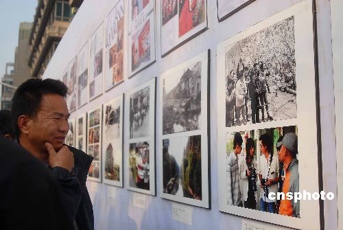 208年11月14日,時尚30年圖片展在杭州開幕,30多幅黑白老照片讓眾多市民回憶起小時候的生活場景,同時大學(xué)生也著各時代的時裝前來捧場。中新社發(fā) 引煒 攝