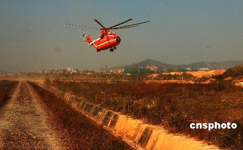 11月15日,隨著一架米-26TC直升機降落梧州機場,拉開了2008年廣西秋冬季森林航空消防序幕。本次共有3架大型直升機加入廣西秋冬季航空森林消防工作,這是國家林業局西南航空護林總站首次動用如此規模力量支持廣西航空護林。它們將航空護林范圍覆蓋廣西的南寧、柳州、來賓、桂林等,同時向湖南、廣東輻射。中新社發 謝志剛 攝