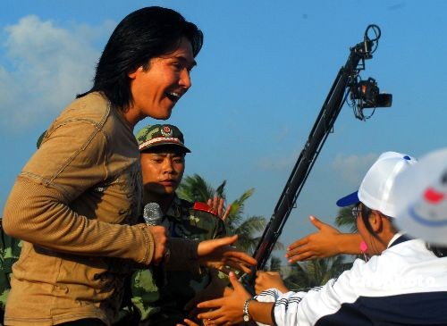 圖:費翔海南島歡樂節(jié)上獻唱《故鄉(xiāng)的云》