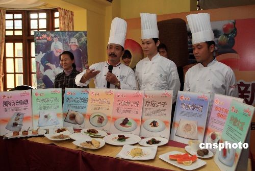 11月21日,被視為吸引大陸客“金字招牌”的臺灣“蔣家菜”,在蔣宋聯(lián)姻的上海“愛廬”旁的一餐廳高調(diào)亮相。來自臺灣桃園的大廚,在此一展寶島版“蔣家菜”的正宗烹調(diào)功夫。“蔣家菜”菜譜是海蜇絲筍、雪菜百葉毛豆、家常豆干、白菜獅子頭、沙參玉竹燉雞湯、無錫嫩子排、蒜子燒黃魚、雞油炒飯、養(yǎng)生牛肉茶、烤奉化芋頭、檸檬木瓜。美味佳肴涵蓋蔣介石的偏愛、蔣緯國喜好以及宋美齡的美容養(yǎng)生。據(jù)悉,正宗的一份桃園“蔣家菜”套餐,約合新臺幣五百元左右,針對大陸團(tuán),當(dāng)?shù)匾淹瞥龈鞣N優(yōu)惠。中新社發(fā) 潘索菲 攝
