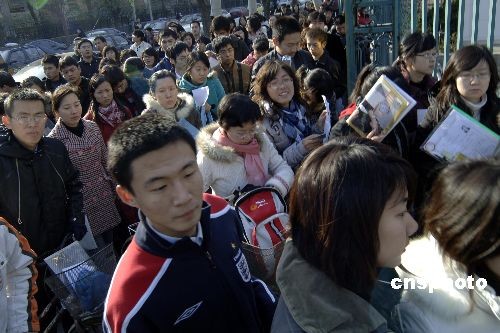 11月30日,2009年國家公務(wù)員考試正式開考,全國共計(jì)報(bào)名人數(shù)775418人,比去年增加13余萬人,考試錄取率約1.75%。金融危機(jī)、畢業(yè)生逐年增多等就業(yè)壓力導(dǎo)致公務(wù)員報(bào)考高“熱”不退,因此又被稱為“中國競爭最激烈考試”。圖為北京考場外考生準(zhǔn)備入場筆試。中新社發(fā) 徐曦弋 攝