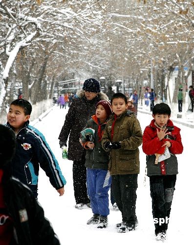 12月2日,新疆烏魯木齊迎來第二次降雪,這是今年入冬以來首場較強的冷空氣降溫并夾裹紛紛揚揚的大雪襲來,放學(xué)的兒童們嬉笑玩耍在飄揚的雪花和清新的環(huán)境之中。中新社發(fā) 馬蕙萍 攝