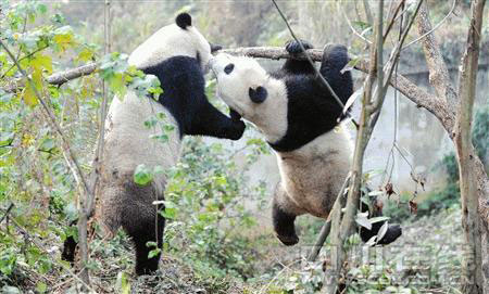 這對"金童玉女"何時繁衍后代,也成為人們關(guān)心的問題。大熊貓團(tuán)團(tuán)、圓圓今年才四歲多,剛步入性成熟期,預(yù)計1-2年后就可列入繁殖計劃。"今年初,它們第一次出現(xiàn)了發(fā)情跡象。"飼養(yǎng)員高強(qiáng)說,在大熊貓的世界里,一到四歲的大熊貓為亞成體,四至五歲才進(jìn)入性成熟期,成為成年大熊貓,"結(jié)婚生子"也是在成年后才開始。現(xiàn)在為了使團(tuán)團(tuán)、圓圓能自然交配成功,除了帶領(lǐng)它們跑圈鍛煉身體外,每天飼養(yǎng)員都會拿著窩窩頭、蘋果等引誘團(tuán)團(tuán),使其站立20分鐘左右,"大熊貓的自然交配能力已逐漸退化,交配時,它的后肢必須承重整個身體,這么做是訓(xùn)練后肢力量。"