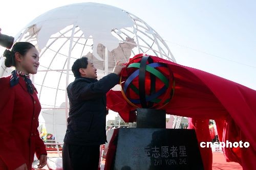 12月5日,北京奧運會后的首個國際志愿者日,奧運志愿者星正式揭幕。 為表彰志愿者為北京奧運會、殘奧會的成功舉辦作出的突出貢獻,激勵更多人士加入志愿服務行列,經(jīng)國際天文學聯(lián)合會小天體命名委員會批準,國際永久編號第18639號小行星被命名為“奧運志愿者星”。中新社發(fā) 富田 攝