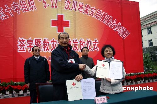 12月5日上午,海峽兩岸紅十字組織在“5.12”汶川大地震震中四川省映秀鎮(zhèn)簽署了汶川地震災(zāi)后重建協(xié)議。協(xié)議內(nèi)容涉及四川、甘肅和陜西3省地震重建項(xiàng)目,總投資金額15億新臺(tái)幣。中新社發(fā) 黃永莉 攝
