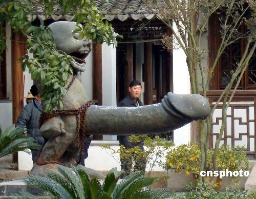 近日,參觀者在蘇州古鎮(zhèn)同里“中華性文化博物館”內(nèi)觀看雕塑“綁不住的地方”。 據(jù)悉,這座面積約7000平方米的性文化博物館是4年前從上海搬遷到同里的,展出古代性文化實物、雕塑、圖畫、書籍等展品2000件左右。中新社發(fā) 王建康 攝