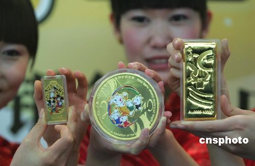 12月23日,中國建設(shè)銀行與中國印鈔造幣總公司合作推出的三款黃金投資品牛年生肖如意金(右)、廣州2010年亞洲運(yùn)動會吉祥物紀(jì)念金章(中)、迪士尼牛年生肖金條,同時(shí)在北京亮相。中新社發(fā) 沈晨 攝