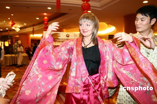 此次年會(huì)的承辦方漢衣坊透露,隨著中國民族傳統(tǒng)文化熱的迅速升溫,中國文化已漸漸成為吸引國際眼球的新亮點(diǎn),此次年會(huì)的成功舉辦,就是一個(gè)很好的例證。語言不通的俄羅斯賓客對(duì)試穿漢服、漢式禮器及中國禮儀文化表現(xiàn)出的濃厚興趣和接受度,足以證明中國文化對(duì)境外人士具有巨大的魅力。