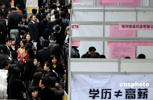 二月三日,福州舉辦春節后首場針對大中專畢業生的招聘會,一展位前掛起了“學歷不等于高薪”的橫幅。就業市場中,實踐經驗、社會交際等能力開始成為各用人單位考察畢業生的重要要求。中新社發 王東明 攝