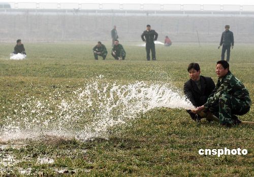 2月4日,河南省禹州市民兵預(yù)備役人員在小呂鄉(xiāng)小呂村幫助村民抗旱澆麥。當(dāng)日,河南省禹州市人民武裝部組織民兵預(yù)備役人員成立30個(gè)民兵抗旱服務(wù)隊(duì),深入到全市部分鄉(xiāng)鎮(zhèn),幫助村民抗旱澆麥。據(jù)悉,2月3日,河南省軍區(qū)下發(fā)通知,要求全區(qū)各單位迅速啟動(dòng)應(yīng)急預(yù)案,充實(shí)抗旱裝備器材,組織相關(guān)業(yè)務(wù)技能培訓(xùn),主動(dòng)與地方政府及水利、氣象等部門溝通聯(lián)系,迅速組織民兵預(yù)備役人員投入抗旱澆麥。中新社發(fā) 牛書(shū)培 攝