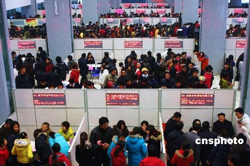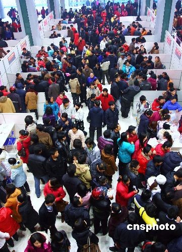 2月6日,江蘇省海安縣舉行“春天的陽光”農民工就業專場招聘會,125家用人單位3600多個崗位,吸引了18000多名農民工前來應聘。中新社發 仇穩山 攝