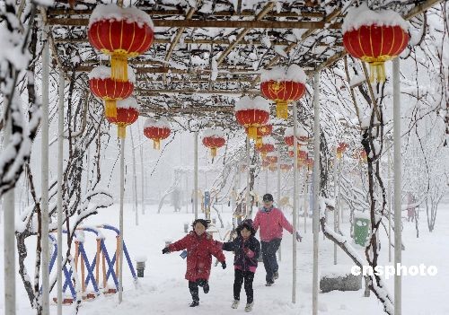 2月8日,山西省長治市十三個縣市區喜降瑞雪,最大降雪量8.7毫米,平均降雪量達6.7毫米。在城區,市民們紛紛走出戶外,盡情感受新年第一場瑞雪。為了促進降雪量,市氣象部門投入了9輛人工增雨作業車,進行大范圍的人工增雨作業,目前,已發射增雨火箭彈170余枚,收到明顯效果。中新社發 姚林 攝
