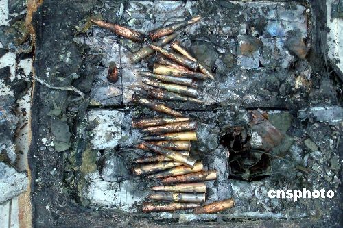 2月11日,浙江省蒼南縣炎亭邊防派出所民警下鄉(xiāng)走訪時(shí),遇見漁民陳某正在家門口用榔頭敲打一個(gè)表面裹滿了泥沙的木箱子,打開后發(fā)現(xiàn)有1000余發(fā)軍用子彈。據(jù)邊防民警介紹,這箱子彈保存較為完好,大約戰(zhàn)爭(zhēng)年代遺留下來(lái),是漁民陳某在2月10日出海作業(yè)時(shí)從海底打撈上來(lái)的,誤當(dāng)作稀有“古董”運(yùn)回家中收藏。目前,警方已依法對(duì)這箱子彈進(jìn)行了收繳。中新社發(fā) 吳水斌 攝