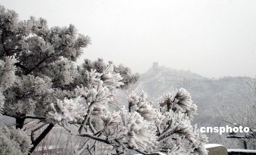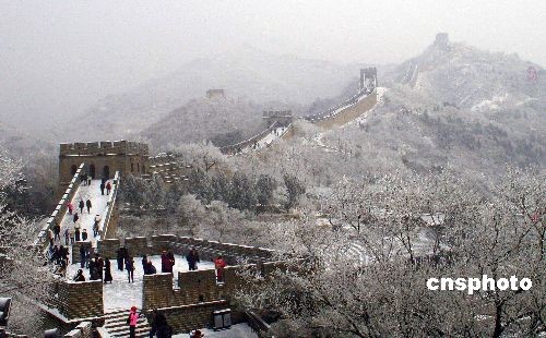 2月18日,雨水節(jié)氣。一場春雪將八達嶺長城裝扮得格外壯觀。圖為銀裝素裹的八達嶺長城。中新社發(fā) 張民 攝