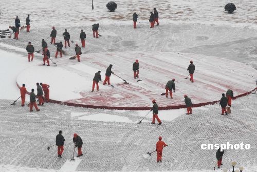 2月19日,東北特鋼集團大連基地員工們在清除積雪。當日,遼寧大連市再次降雪。兩天來,大連市各單位及廣大市民,以雪為令,及時清除責任區路面積雪,保障道路暢通和市容整潔。中新社發 劉德斌 攝