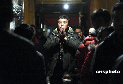 2月24日為中國藏歷年三十,拉薩大昭寺內信眾排長隊相擁朝佛。中新社發 廖攀 攝