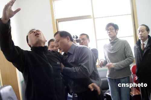 2月28日,年齡超過(guò)五十歲的企業(yè)人士蔡玉建,在河南鄭州演示“少林點(diǎn)穴功”,醫(yī)學(xué)專家現(xiàn)場(chǎng)觀看后稱,這不是什么神秘的東西,屬于人體打擊正常反應(yīng)。大約一周前,經(jīng)營(yíng)生物保健產(chǎn)品的蔡玉建被當(dāng)?shù)貓?bào)紙曝出擅長(zhǎng)點(diǎn)穴,引起媒體和民眾的廣泛關(guān)注。28日,蔡玉建和其弟子釋延力的表演在鄭州市一家醫(yī)院上演,觀者有媒體、醫(yī)護(hù)人員和專家等。中新社發(fā) 李志全 攝
