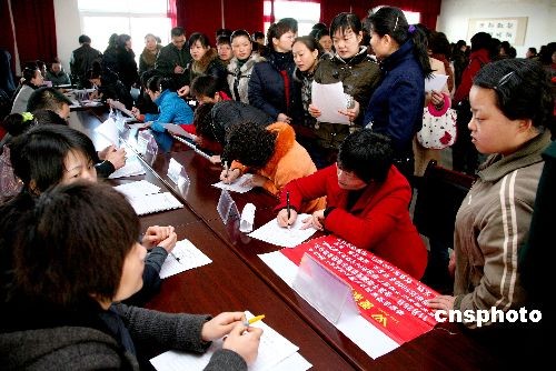 2月28日,新疆哈密市舉辦首屆女性專場招聘會,哈密市婦聯組織57家企業為下崗、待業和外來務工婦女準備了600多個崗位,吸引了千余名婦女前來應聘。中新社發 蔡增樂 攝