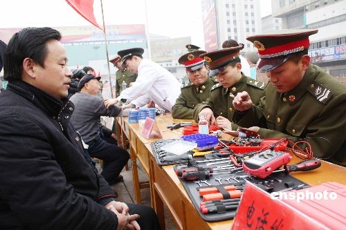 3月5日,青年志愿者在蚌埠火車站廣場參加“學雷鋒”獻愛心便民服務活動。當日是全國“學雷鋒日”,共青團安徽蚌埠市委舉行了“爭做志愿者、創造新生活”為主題的志愿服務統一行動,部隊、機關、學校、醫院、企業等二十多個單位組成多個青年志愿便民服務隊,深入駐地農村、街道、社區、敬老院、兒童福利院等地,積極開展醫療巡診、法律咨詢、計生宣傳、心理咨詢、環保宣傳、家電維修、安全消防、用電知識等多種服務活動。中新社發 耿國慶 攝