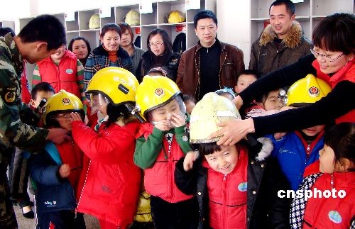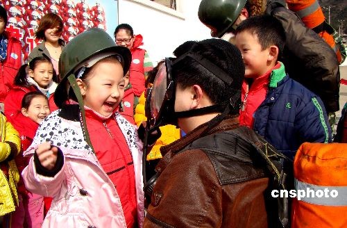 3月13日,江蘇連云港市公安連云消防大隊舉辦了“警營對外開放日”活動,邀請老師、家長、小朋友前來參觀。小朋友們參觀了消防設(shè)施,聽消防隊員講解消防知識,體驗著裝,試戴呼吸器,親身感受警察風(fēng)采。警民共同迎接即將到來的“3·14國際警察日”。中新社發(fā) lyg王春 攝