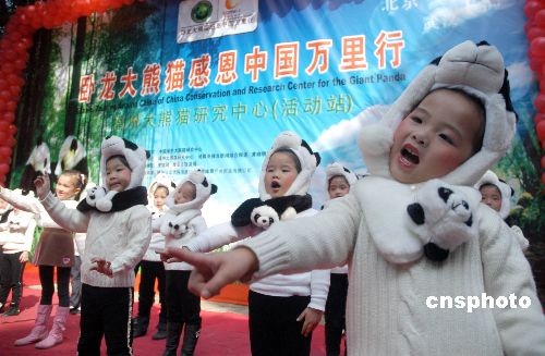 2009年3月15日,為了感謝各地對臥龍大熊貓的愛心援助,在汶川地震發(fā)生即將一周年之際,由四川臥龍中國保護(hù)大熊貓研究中心主辦的“感恩世界點(diǎn)亮希望 臥龍大熊貓感恩中國萬里行”活動福州站在福州熊貓世界舉行。中新社發(fā) 張 斌 攝