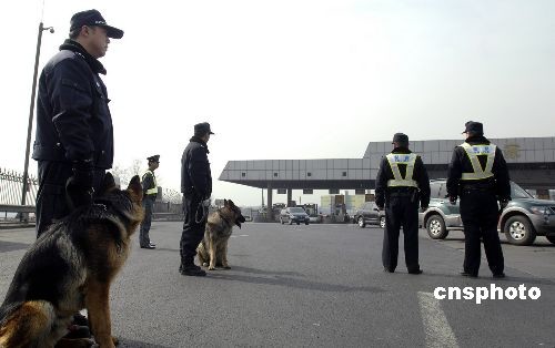 近日,北京豐臺警方在京石高速公路杜家坎收費站治安檢查站采取警員與警犬一同進行安全檢查的措施,確保萬無一失。 杜家坎收費站位于豐臺西部和房山東部的交界地帶,地理位置非常重要,是京石高速公路進入市區的必由之路,每天的車流量很大。中新社發 楊陽 攝