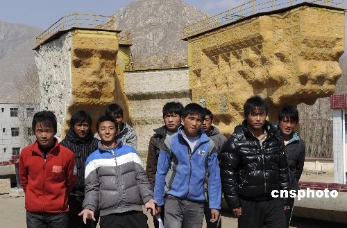 3月16日,西藏登山學校學生們在位于拉薩的中國最高的人工巖壁前。西藏登山學校的學員都是來自珠峰所在地的農牧民藏族青年,入學年齡在16-18歲,必須是初中畢業,身體素質要好。該校是國家扶貧項目,學員在校期間享受全部免費教育。中新社發 廖攀 攝
