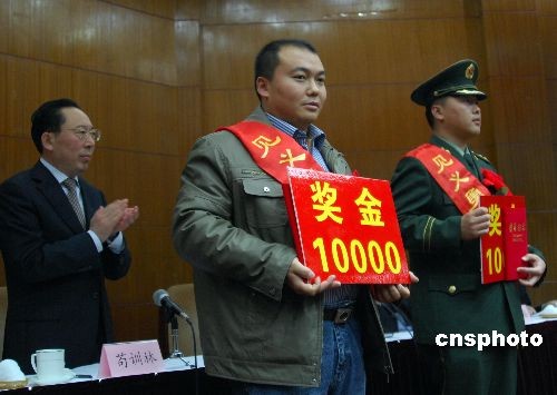 3月19日,青島開發區召開見義勇為表彰大會,隆重表彰“3.8”唐島灣跳海救人英雄樊升坤等35名見義勇為積極分子,并為他們頒發了見義勇為積極分子榮譽證書和1000元至50000元不等獎金。中新社發 衛卿 攝