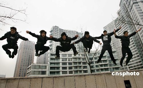 3月21日,一只名為“城市猴子”的北京跑酷隊在城市的高樓林立中訓練。跑酷運動誕生于上世紀80年代的法國,意為把整個城市當作一個大訓練場,一切圍墻、屋頂都成為可以攀爬、穿越的對象,是在都市青年中很流行的時尚運動。此項運動自三年前傳入中國,深受酷愛極限運動的青少年喜愛。據悉中國首屆正規跑酷比賽將于本月底在北京舉行。中新社發 富田 攝