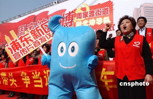 3月26日,上海世博會(huì)倒計(jì)時(shí)四百天在即,緊鄰世博會(huì)浦東園區(qū)的周家渡社區(qū)舉行“迎博宣誓”主題活動(dòng)。包括外籍人士在內(nèi)的千余上海市民齊呼“世界文明的盛會(huì),我們大家的世博”等迎世博口號(hào),場(chǎng)面壯觀。中新社發(fā) 張亨偉 攝