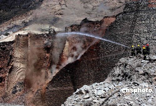 4月3日早晨9時(shí)許,新疆烏魯木齊市達(dá)坂城區(qū)一石灰窯發(fā)生塌方事故,正在作業(yè)的5名工人被埋。事故發(fā)生后,烏魯木齊市消防指揮中心迅速出動(dòng)3輛消防車,15名消防人員前去救援。據(jù)現(xiàn)場救援的消防人員分析,坍塌的石灰窯窯口溫度仍在四五百攝氏度以上,除1名工人成功逃脫,其余4名被埋人員生還希望渺茫。中新社發(fā) 劉新 攝