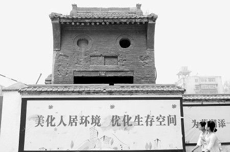 工地一位負責人講,考慮到這座門牌樓已經有上百年的歷史,就沒有隨著城中村改造整體拆除,暫時保護起來!啊畤濉?我還沒發現,難怪有很多人來這里轉悠。”他說,最近很多年輕人來看這座門牌樓,還有好多人拿著相機拍照。 ( 李卓洋)