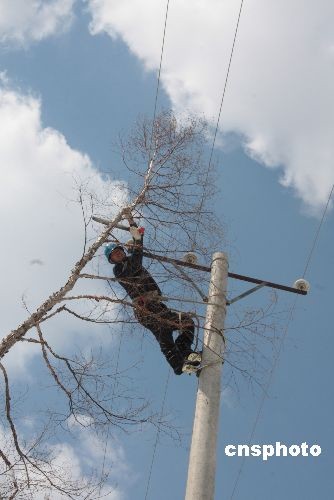 4月23日,當牡丹江市電業搶修人員將三道林場內最后一處電線桿上的刀閘閉合,7000多戶因暴雪導致斷電的人家,終于重新恢復正常的生產生活。 4月21日,黑龍江省牡丹江市出現雨夾雪天氣,其中牡丹江市三道林場的局部林區因當地“小氣候”影響遭受暴雪襲擊,最深處的積雪厚度達到1米以上,林區內的一些林木被大雪壓斷,通過林區內的部分供電線路短路。從4月21日至4月23日,牡丹江市電業系統出動100多名搶修人員奮戰在40多公里的林區供電線路上,及時排除短路故障及線路險情。直到4月23日下午1點30分,各個停電村屯才陸續恢復供電。中新社發 莊文斌 攝