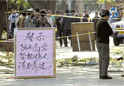 “像是地震,太可怕了!”住在3層的大媽臉色慘白,向眾人講述事發一幕。她說,當時正在看電視,突然聽到“嘭”的一聲巨響,感覺大地一抖,聽到玻璃破碎和石頭砸落的聲音。