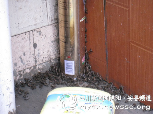 前日一早,家住綿陽安縣桑棗鎮香溪村4組的席興國打開家門,瞬間被眼前的景象嚇傻了:一眼望去,在視線所能及的范圍,地面上密密麻麻地聚集了小拇指般大小、黑壓壓一片小蟾蜍,要想出去根本沒法下腳。再一探頭,只見院子里、路上、鄰居房子周圍都被上百萬只蟾蜍包圍了。如此異常現象,村民擔心為地震前兆,相關部門正在進一步調查當中。