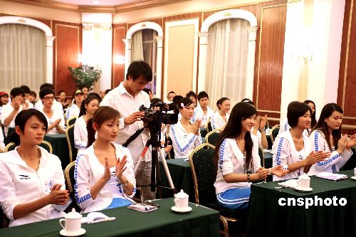 2007年11月14日,進入第十三屆中國模特之星大賽全國決賽的30名男模和30名女模抵達南寧。主辦方廣西電視臺《時尚中國》當晚舉行選手見面會。廣西電視臺副臺長林杰謀,大賽總導演彭勇,《時尚中國》制片何海林分別給選手鼓勵和提出要求。模特們11月15-22日將在南寧進行魔鬼訓練,11月23、24、25日進行三場決賽直播。中新社發 駱文剛 攝