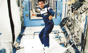 日本宇航員若田光一在國際空間站上由日本建造的“希望”號實(shí)驗(yàn)艙內(nèi)試驗(yàn)了毯上飛行以及零重力條件下滴眼藥水等。據(jù)報(bào)道,日本宇宙航空研究開發(fā)機(jī)構(gòu)已將若田5月15日的“飛毯”表演視頻公之于眾。畫面顯示,現(xiàn)年45歲的若田站在一塊白色布單上,就像單板滑雪一樣平穩(wěn)地滑過國際空間站上的一個實(shí)驗(yàn)艙。若田通過麥克風(fēng)說:“我在這個‘魔毯’飛行中使用膠帶固定雙腳,以便能站在上面。”