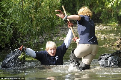 據英國《每日電訊報》6月4日報道,倫敦市長鮑里斯·約翰遜日前在視察一個環保項目時不慎跌入河中,所幸迅速被身旁的人們營救上岸。