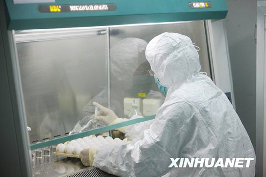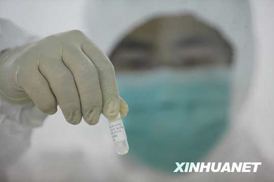 6月8日,來自美國的甲型H1N1流感疫苗生產(chǎn)用毒株NYMCX-179A,從美國運抵北京,并經(jīng)過通關(guān)、檢驗檢疫等手續(xù)后,送抵北京科興生物制品有限公司。已經(jīng)完成疫苗臨床研究工作的北京科興當(dāng)晚啟動了毒株種子批的制備工作,這標(biāo)志著甲型H1N1流感疫苗的批量生產(chǎn)正式啟動,并有望于7月底生產(chǎn)出首批疫苗。 邢廣利 攝