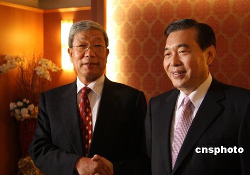 大陸海峽兩岸經(jīng)貿(mào)交流協(xié)會(huì)會(huì)長(zhǎng)李水林率領(lǐng)“兩岸經(jīng)貿(mào)促進(jìn)考察團(tuán)”到臺(tái)灣進(jìn)行采購(gòu)。圖為6月1日,李水林(左)與臺(tái)灣外貿(mào)協(xié)會(huì)董事長(zhǎng)王志剛(右)共同接受采訪。李水林說(shuō):“我們是多年的好朋友、好兄弟。我長(zhǎng)兩歲,稱大哥,志剛小兩歲,稱老弟。我們喝酒,志剛要先喝兩杯。”中新社發(fā) 耿軍 攝