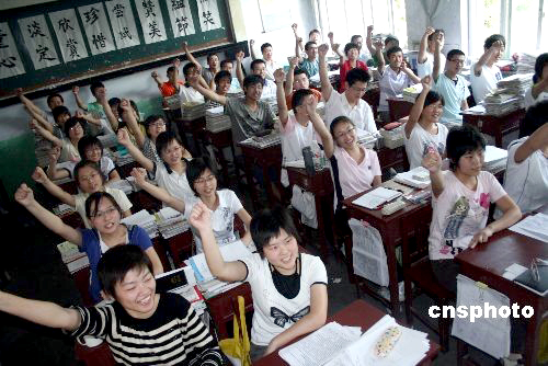 6月3日,在高三的同學(xué)們?cè)谝黄鹱觥靶睦泶驓庥螒颉保鰪?qiáng)自信心。隨著今年高考的臨近,為緩解考生壓力,山東博興縣第一中學(xué)通過(guò)開(kāi)展心理輔導(dǎo)、組織做減壓游戲、開(kāi)設(shè)減壓課等方式,減輕考生應(yīng)考?jí)毫Γ尫趴忌o張心情,幫助他們?cè)鰪?qiáng)自信心,以輕松樂(lè)觀的心態(tài)迎接高考。中新社發(fā) 陳彬 攝
