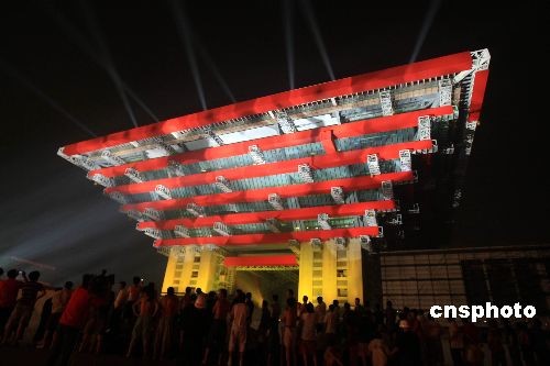 6月22日晚,素有“東方之冠”之稱的上海世博會中國館舉行亮燈儀式,在黃浦江畔初綻美麗光芒。中國館正式亮燈是世博會園區(qū)電力建設中一個重要里程碑,標志著世博各項供電工程已全面進入沖刺階段。據悉,今日投運的中國館三十五千伏變電站總容量為一點六萬千伏安,投運后將直接為兩萬平方米的中國國家館、三萬平方米的中國地區(qū)館以及三千平方米的港澳臺館提供安全、穩(wěn)定的電力。中新社發(fā) 湯彥俊 攝
