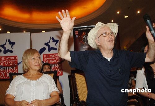 7月20日,2009北京世界魔術大會召開發(fā)布會,宣布開幕式晚會預演將于7月21日至23日在北京保利劇院拉開帷幕。9位在國內外獲得金獎的魔術師將亮相本次晚會,獲得中國雜技“金菊獎”金獎的農民魔術師汪奇魔、“金菊獎”全國魔術比賽金獎獲得者傅琰東、曾獲“寶豐杯”全國魔術金獎的戚原睿、首次展示“水里變魔術”的鄔鵬程將同臺表演。圖為將于本次大會獻藝的西班牙著名魔術師胡安(右)暢談“魔幻奧秘”。中新社發(fā) 李學仕 攝