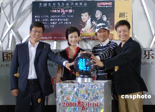 5月18日傍晚,將于6月30日上演的2009魅力中國北京鳥巢夏季音樂會,在北京召開第二次新聞發布會暨開票儀式,宣布音樂會正式進入倒計時。陳道明、閻維文、白巖松三位“好男人”作為宋祖英的好友現場助陣。據透露,這場音樂會將是鳥巢第一次使用單面立體舞臺,將配置最頂尖的燈光音響設備,而宋祖英在音樂會上不僅要以充滿視覺沖擊的六套華服實現形象大突破,更有望與周杰倫或者多明戈激情共舞。中新社發 李學仕 攝