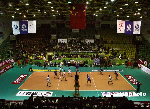 12月15日,2007-2008賽季全國男排聯賽遼寧對八一的比賽在錦州體育館舉行,最終遼寧隊苦戰五局以3比2力挫八一。中新社發 李張建 攝