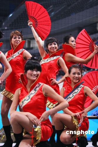 圖:啦啦隊為“好運北京”手球賽添色