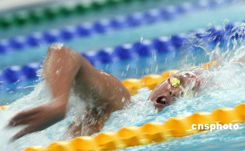 2月3日,“好運(yùn)北京”2008年中國(guó)游泳公開賽在北京國(guó)家游泳中心“水立方”進(jìn)行了6個(gè)項(xiàng)目的決賽,在男子1500米自由泳決賽中,中國(guó)選手張琳以15分05秒57的成績(jī)輕松奪金。中新社發(fā) 盛佳鵬 攝